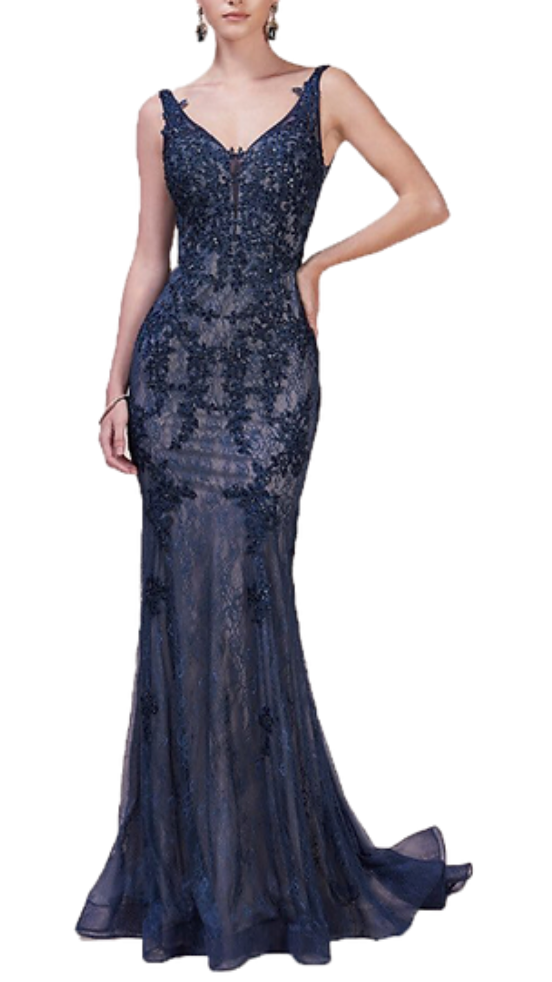 Andrea & Leo Annie Embellished Mermaid Gown in Blue
