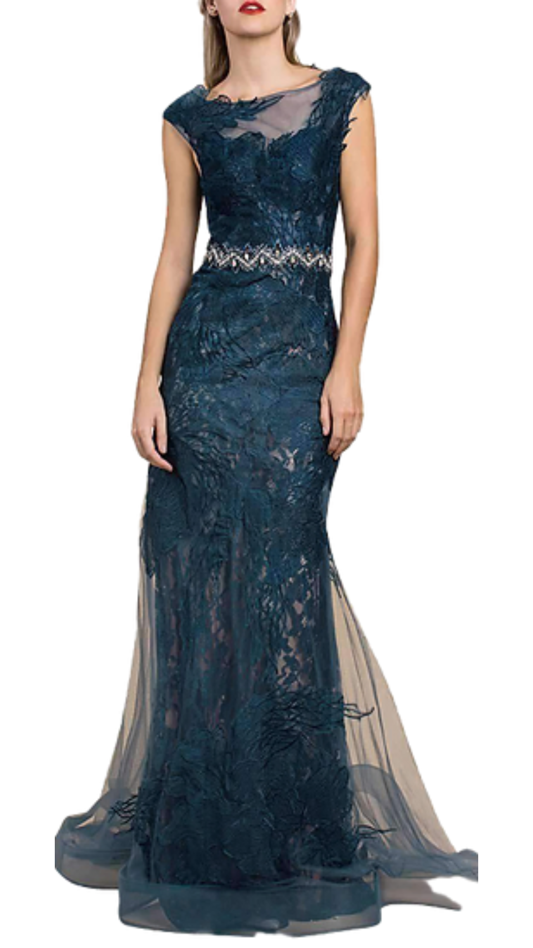 Andrea & Leo Fiona Lace Embellished Waist Gown in Teal