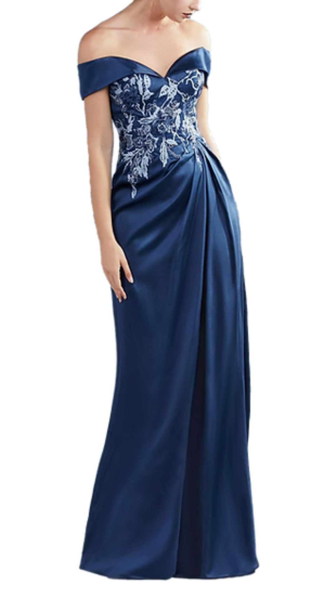 Andrea & Leo Magnolia Embroidered Off-Shoulder Gown in Royal Blue