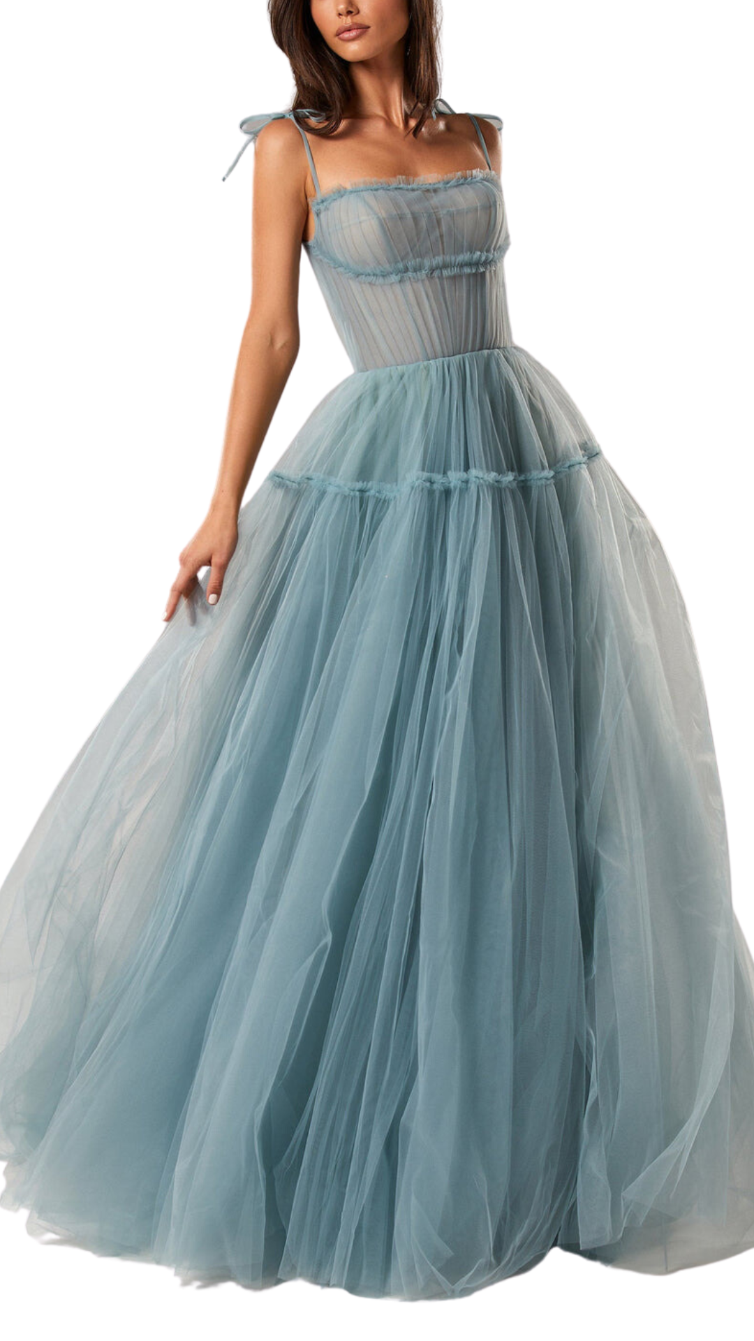 Milla Tulle Tie-Straps Maxi Dress in Ocean Wave