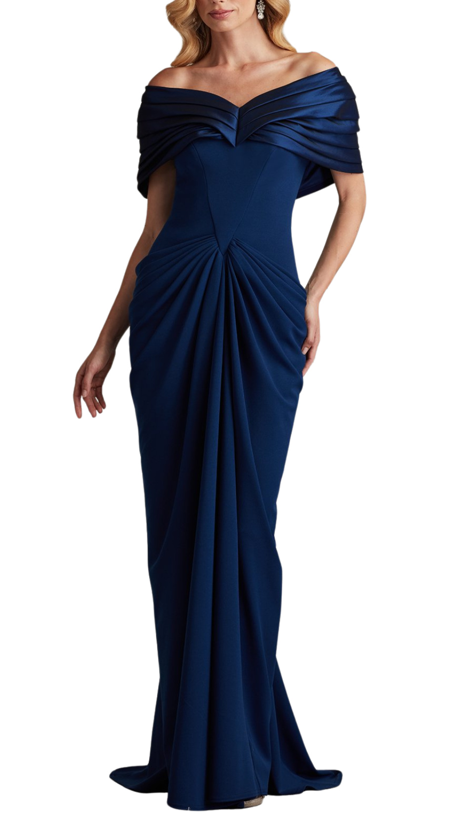 Tadashi Shoji Seraphine Pleated Portrait Collar Gown in Navy