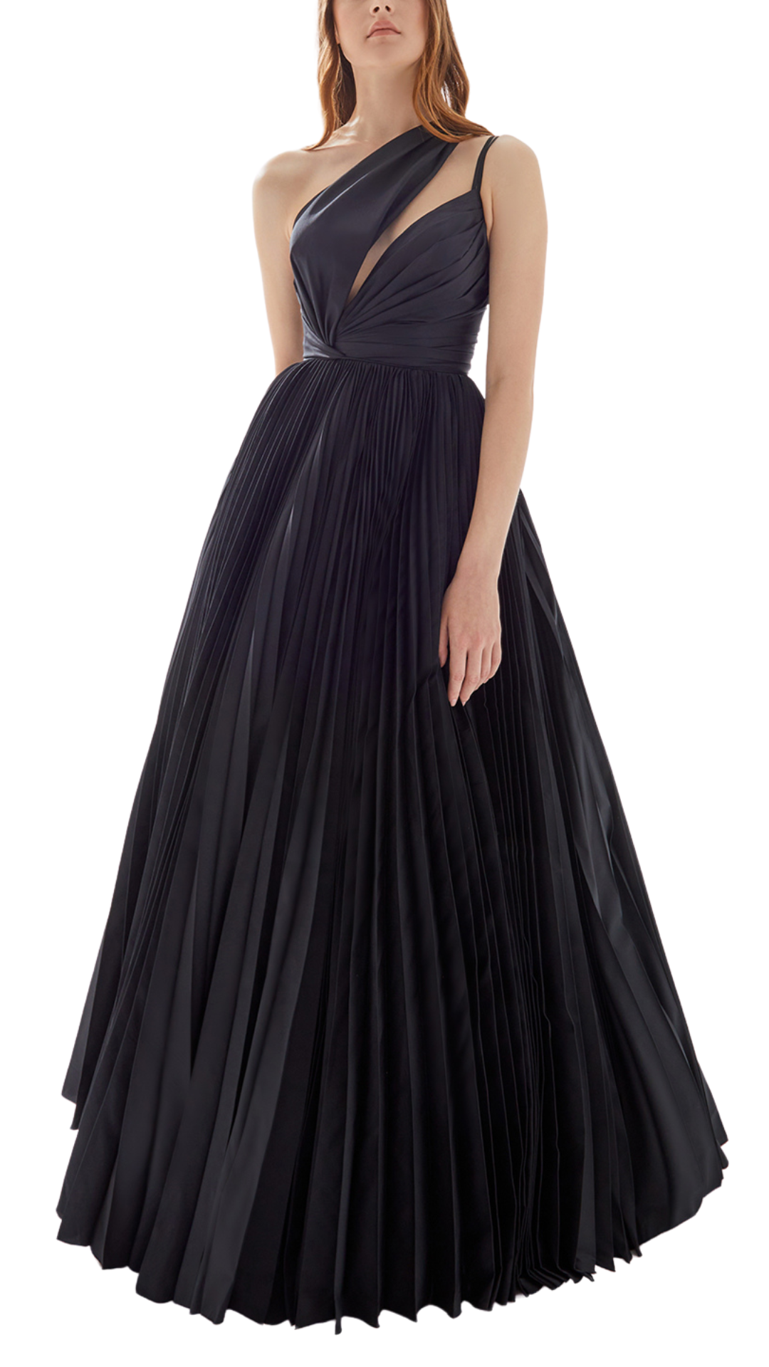 Tarik Ediz Holly Asymmetrical Pleated Gown in Black